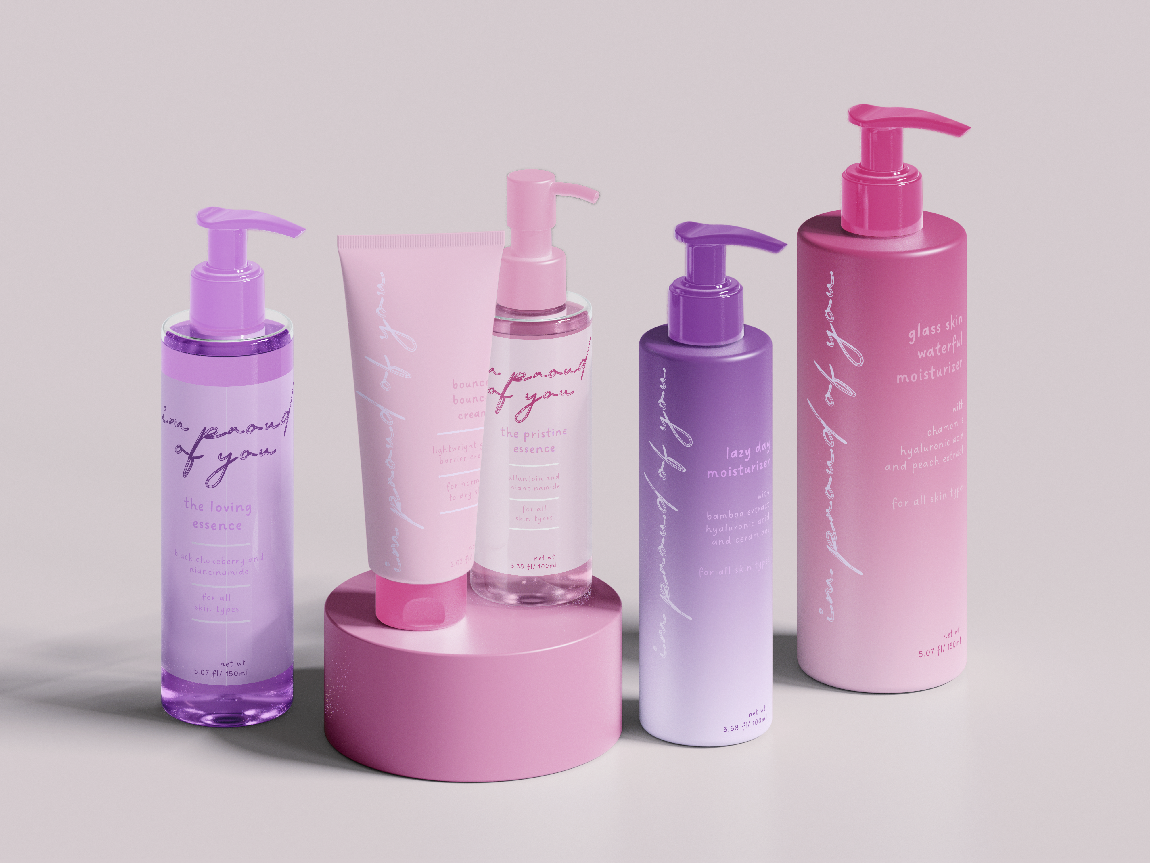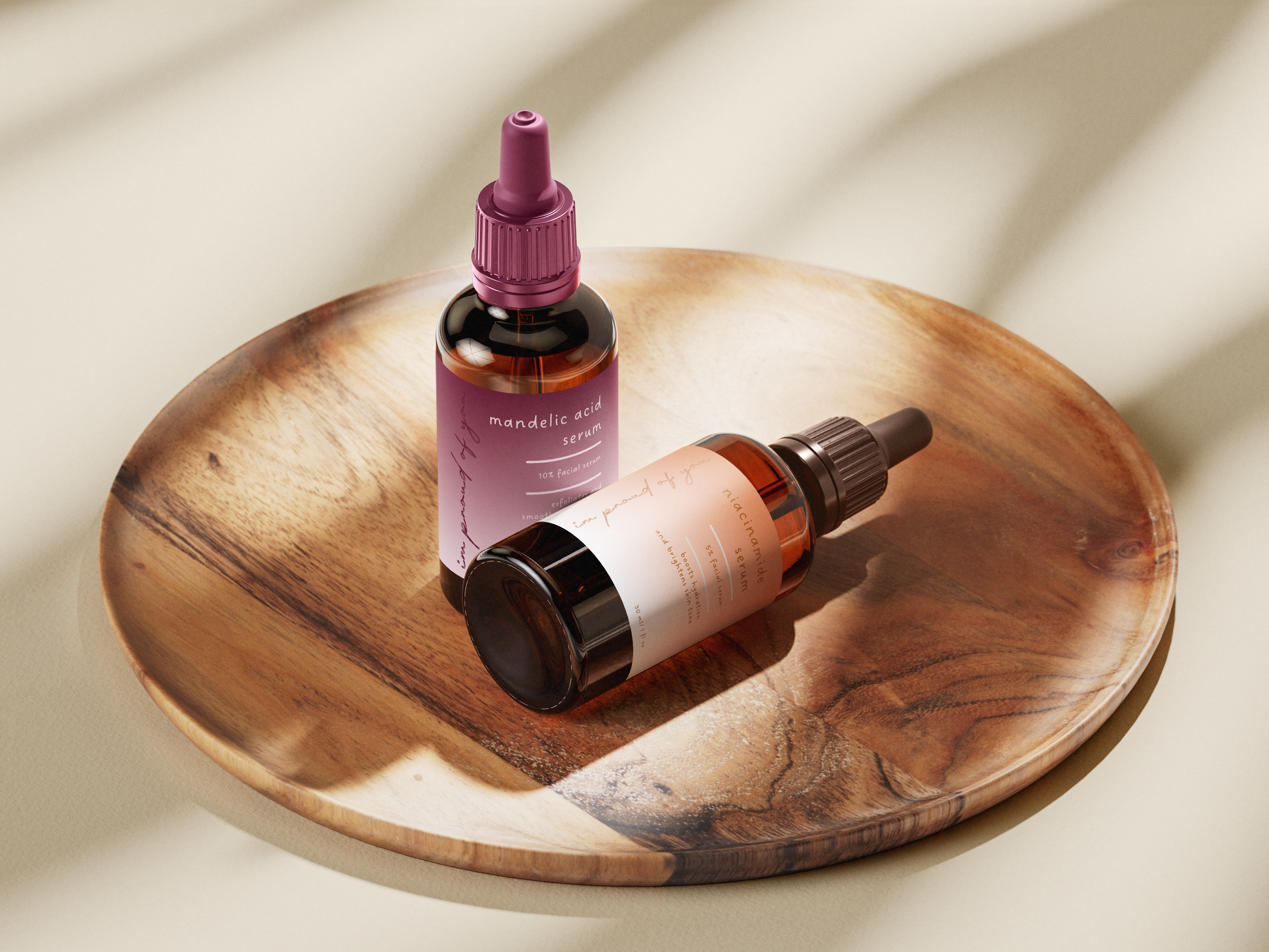 For the serums, I added some reds/pink and some oranges to match the warmer feel of the mockups.