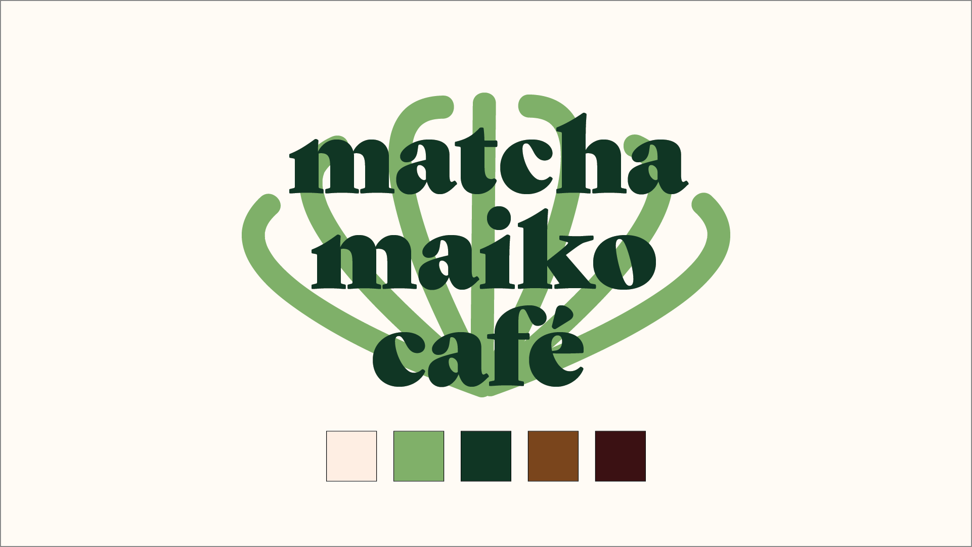 Symbol:The symbol the text resembles a whisk, which is what is typically used to create matcha-based drinks. I wanted the icon to be something easily recognizable that tied back into matcha, similar to the kanji characters and leaf in the original logo.